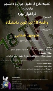 The South Germany Region Representation holds Speech, Discussion, Question and Answer Speakers and Topics: Mehdi Karimi: Human Rights Violation Report and analysis in the Tir 1401 Samaneh Birjandi: Examining the 11th Goal of UNESCO`s 2030 Agenda and its Comparison with the Islamic Republic of Iran Constitution Hasan Hamzehzadeh: Shoulder-Carrier Children Shahla Shahsavani: Islamic Revolution Guards …