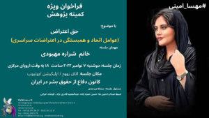 The Research Committee Special Meeting held on October 17, 2022 at 18:00 to Central European Time with administration of Samaneh Birjandi and participation of delegation of human rights activists and other guests on YouTube, Association`s Application and Zoom cyberspace. Lecturers and their lecture subjects are: 1- Start of the meeting with administration of Samaneh Birjandi, …