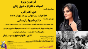 Defense of Women Rights Committee holds Speech, Discussion, Question and Answer Speakers and Topics: Leila Ramezan: The Women Rights Violation Report and analysis in the Dey 1401 Sonia Savarkoob: Examining the Convention on Consent to Marriage, Minimum Age for Marriage, and Registration of Marriages and its Comparison with the Islamic Republic of Iran Constitution Parvin …