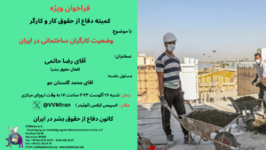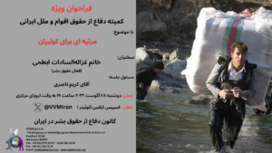 The Defense of Human Rights Association in Iran holds Speech, Discussion, Question and Answer Speakers and Topics: Sharareh Hadizadeh Raeisi: Human Rights Violation Report and analysis in the Mordad 1402 Firouzeh Dehbozorgi: Examining the Declaration on the Rights of Persons Belonging to National or Ethnic, Religious and Linguistic Minorities, and its Comparison with the Islamic …