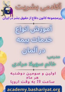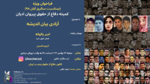 The Defense of Human Rights Association in Iran holds Speech, Discussion, Question and Answer Speakers and Topics: Pariya Torabi: Examining the Convention on the Rights of the Child, and its Comparison with the Islamic Republic of Iran Constitution Barbod Shahsavand: Censorship of Music in Iran Fereshteh Khayamalhoseini: Impact of Damming on Dehydrating the Running Waters …