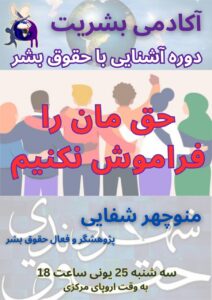 The North Germany Region Representation Special Meeting was held on May 30, 2024 at 18:00 to Central European Time on Twitter, with administration of Asghar Khodabandeh Samani, Lecturers: 1- Start of the Meeting: Asghar Khodabandeh Samani, 2- Abbas Monfared: Human Rights Violation report and analysis in the Ordibehesht 1403, 3- Parvin Mohammadi Afgha: Declaration on …