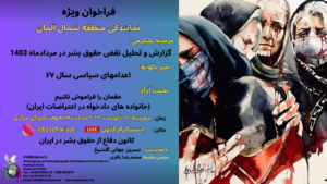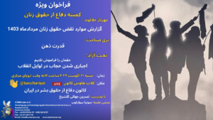 The Defense of Human Rights Association in Iran holds Speech, Discussion, Question and Answer Speakers and Topics: Forough Fili: Human Rights Violation report and analysis in the Mordad 1403 Mohammad Golestanjoo: Examining the 16th Goal of UNESCO`s 2030 Agenda, and its Comparison with the Islamic Republic of Iran Constitution Pourandokht Eslami: Status of Religious Universities …