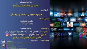 The Defense of Human Rights Association in Iran holds Speech, Discussion, Question and Answer Speakers and Topics: Maryam Mousavi: Human Rights Violation Report and analysis in the Ordibehesht 1404 Mohammad Golestanjoo: Examining the 3rd Article of UNESCO`s 2030 Agenda (Ensure Healthy Lives and Promote Well-being for All), and its Comparison with the Islamic Republic of …