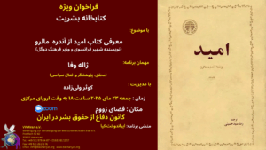 The Defense of Human Rights Association in Iran holds Speech, Discussion, Question and Answer Speakers and Topics: Elaheh Azimi: Child and Educating Religion and Belief Alimohammad Keshtkar: Shia Crescent and its Impact on International Society Zohreh Haghbaali: Citizenship Right in the Iran Constitution and International Laws in Crisis Opinion Exchange, Questions, Answer at the end …