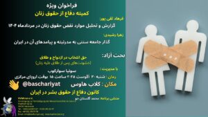 The Defense of Human Rights Association in Iran holds Speech, Discussion, Question and Answer Speakers and Topics: Naghmeh Zarrifi Moghadam: Human Rights Violation Report and analysis in the Mordad 1404 Saeid Beheshti Matin: Strasbourg Appeal, The First World Congress for the Abolition of the Death Penalty and the Examination of Execution Punishment in Iranian Law …