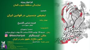 The South Germany Region Representation Special Meeting was held on October 30, 2025 at 19:00 to Central European Time, with administration of Samira Ranjouriyan on Instagram. Guest: Sepideh Hoseini Saber: Art and Censorship in Iran. Meeting Responsible: Samira Ranjouriyan Secretary of Meeting: Sareh Ostovar Voice Recording and Edit: Sina Ashjaei