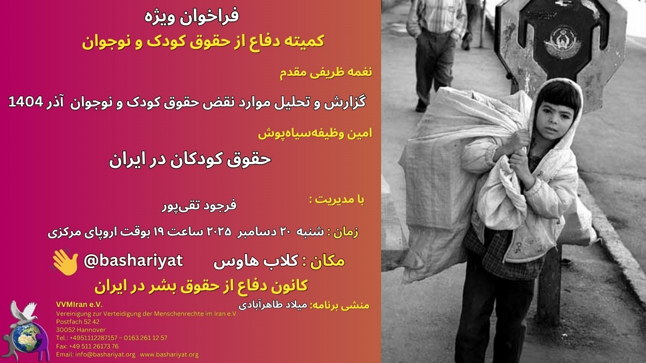 The Defense of Human Rights Association in Iran holds Speech, Discussion, Question and Answer Speakers and Topics: Maliheh Sheshpari: Examining the 15th Goal of UNESCO`s 2030 Agenda, and its Comparison with the Islamic Republic of Iran Constitution Salman Ghorbani: Job Insecurity and Income of Workers Sepideh Hoseini Saber: Place of Art if Achieving the Human …
