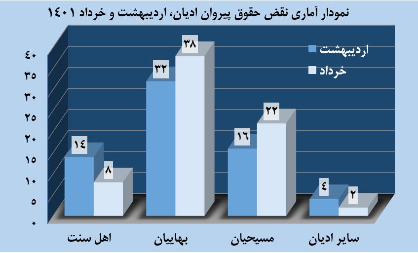 | Followers of Religions Rights Violation Statistical Report in Khordad 1401 | ||||
