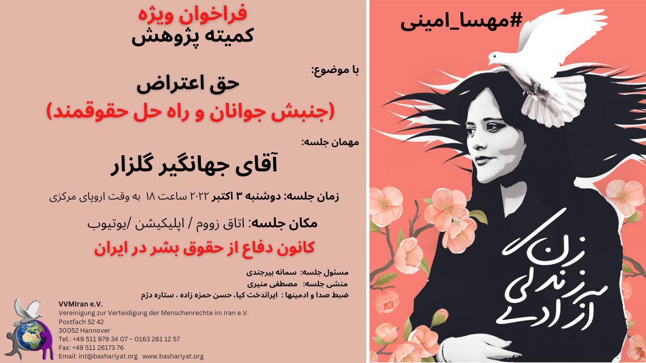 Place of Meeting: Zoom, Application, YouTube Defense of Human Rights Association in Iran