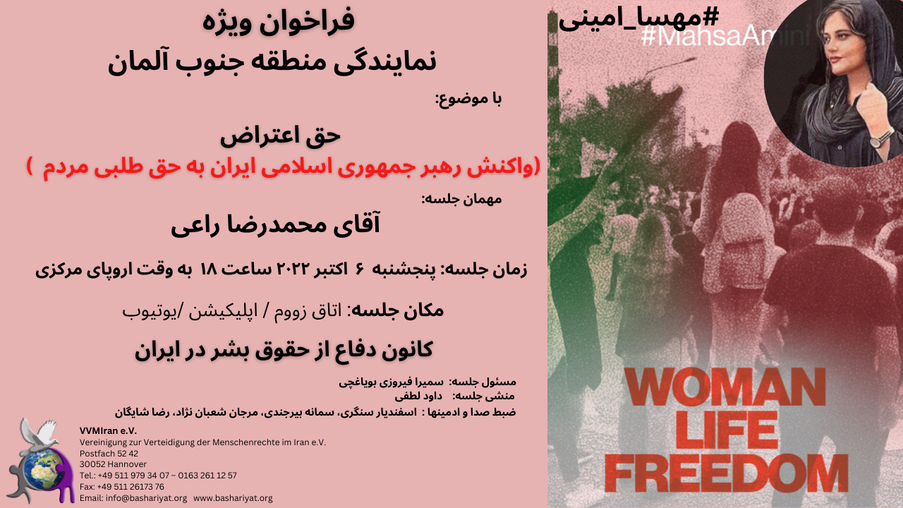 Place of Meeting: Zoom, Application, YouTube Defense of Human Rights Association in Iran