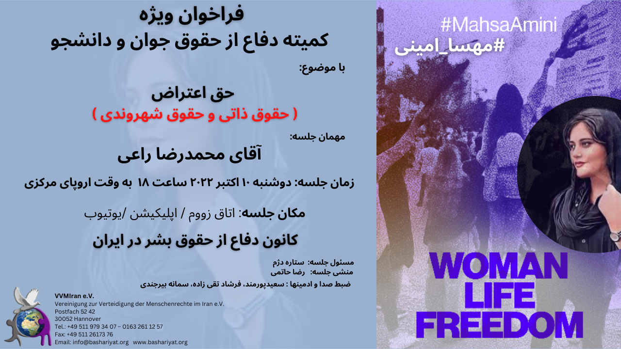 Place of Meeting: Zoom, Application, YouTube Defense of Human Rights Association in Iran