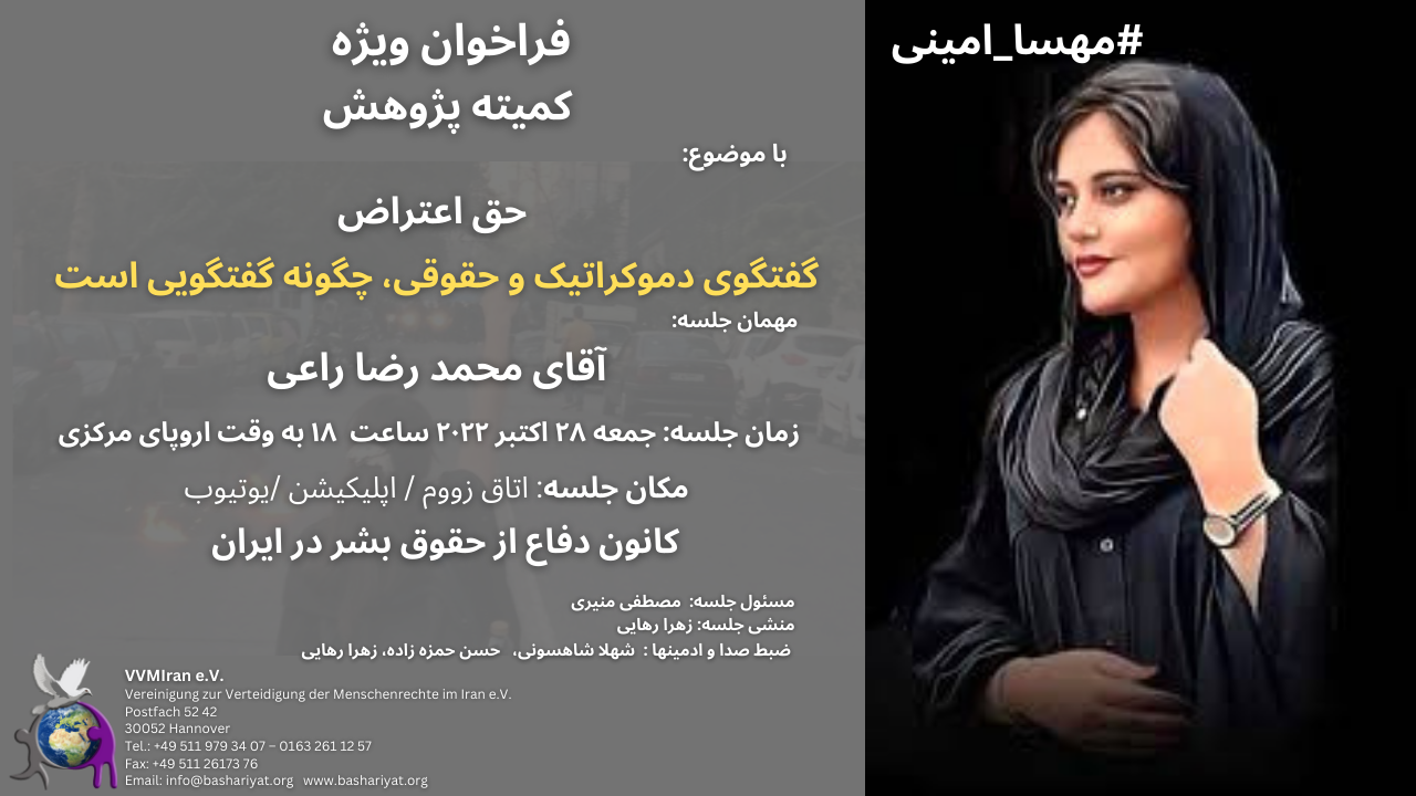 Place of Meeting: Zoom, Application, YouTube Defense of Human Rights Association in Iran