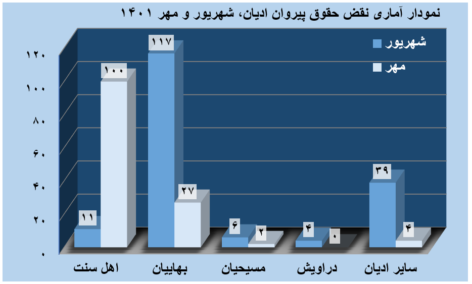 | Followers of Religions Rights Violation Statistical Report in Mehr 1401 | ||||