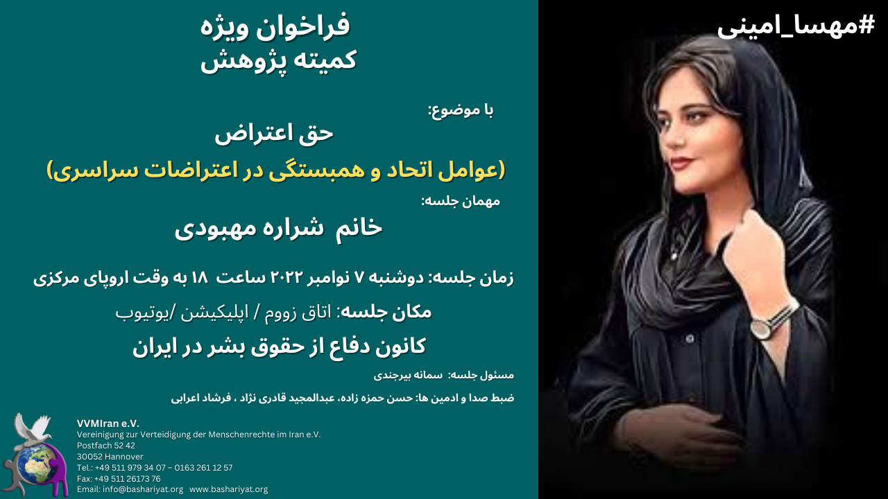 Place of Meeting: Zoom, Application, YouTube Defense of Human Rights Association in Iran