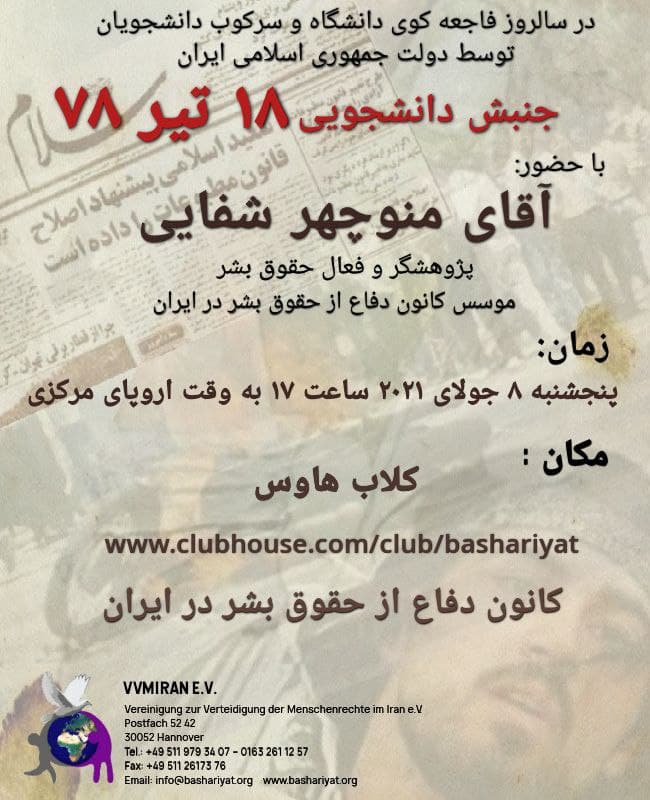 Lecturer: Mr. Manoochehr Shafaei (Researcher, Human Rights Activist and Founder of the Defense of Human Rights Association in Iran)
