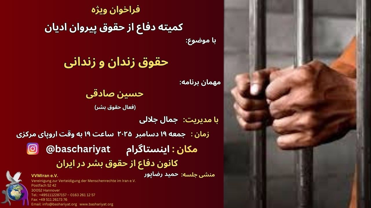 The Defense of Child and Adolescent Rights Committee Special Meeting was held on December 20, 2025 at 19:00 to Central European Time with administration of Farjoud Taghipour on Clubhouse, Guests: Naghmeh Zarifi Moghadam: The Child Rights Violation Statistical Report in Azar 1403, Amin Vazifeh Siyahpoush: Rights of Children in Iran.